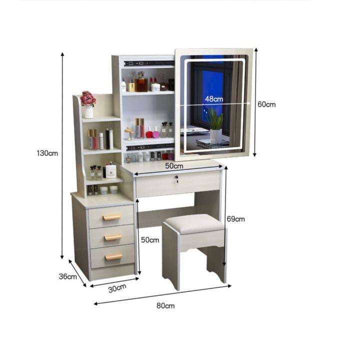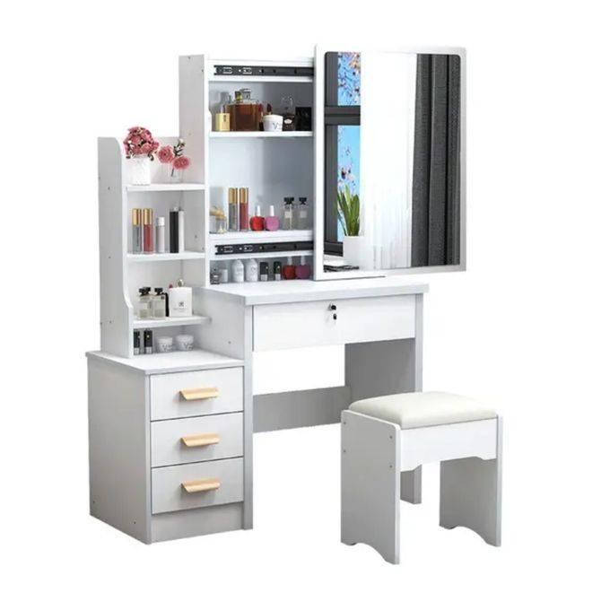 Descriptif techniqueSKU: GE070FD19KX72NAFAMZModèle: Coiffeuse avec miroir et tabouretTaille (Longueur x Largeur x Hauteur cm): 130*80*36Poids (kg): 20Couleur: Marron/BlancMatériau principal: Bois